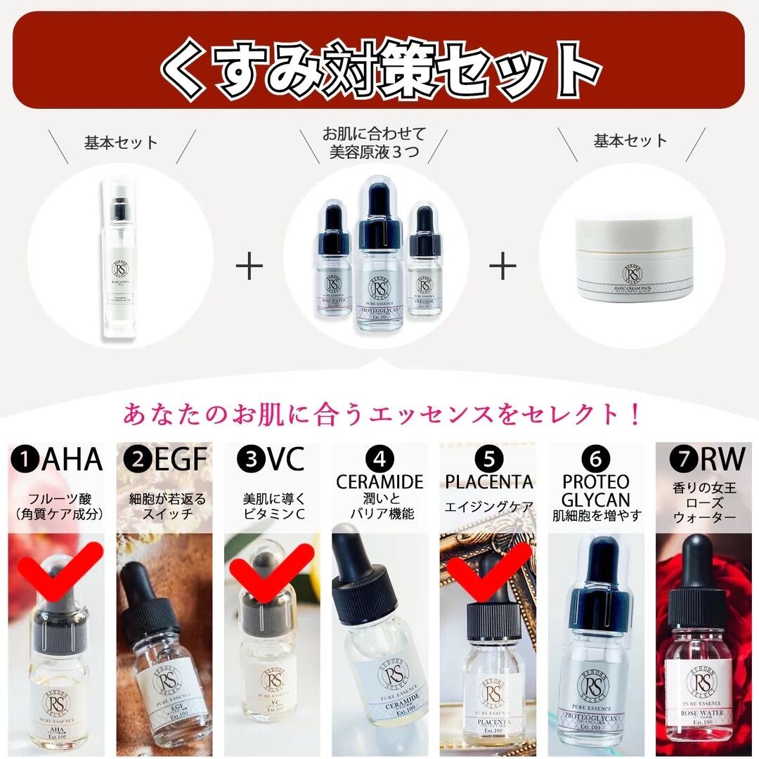 (ベーシックローション 1本)+(原液 3本)+(パック 1本)